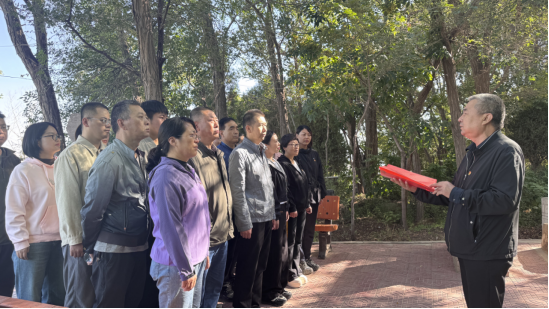 在山顶纪念广场,活动进入高潮。面对庄严的纪念碑与鲜红的党旗,全院干警肃立,在县检察院党组书记、检察长高兴明的领誓下,高举右拳,重温入党誓词:“我志愿加入中国共产党……为共产主义奋斗终身,随时准备为党和人民牺牲一切,永不叛党!”誓言铿锵,回荡在山谷之间,表达了靖检人对党的无限忠诚与为检察事业奋斗终身的坚定决心。